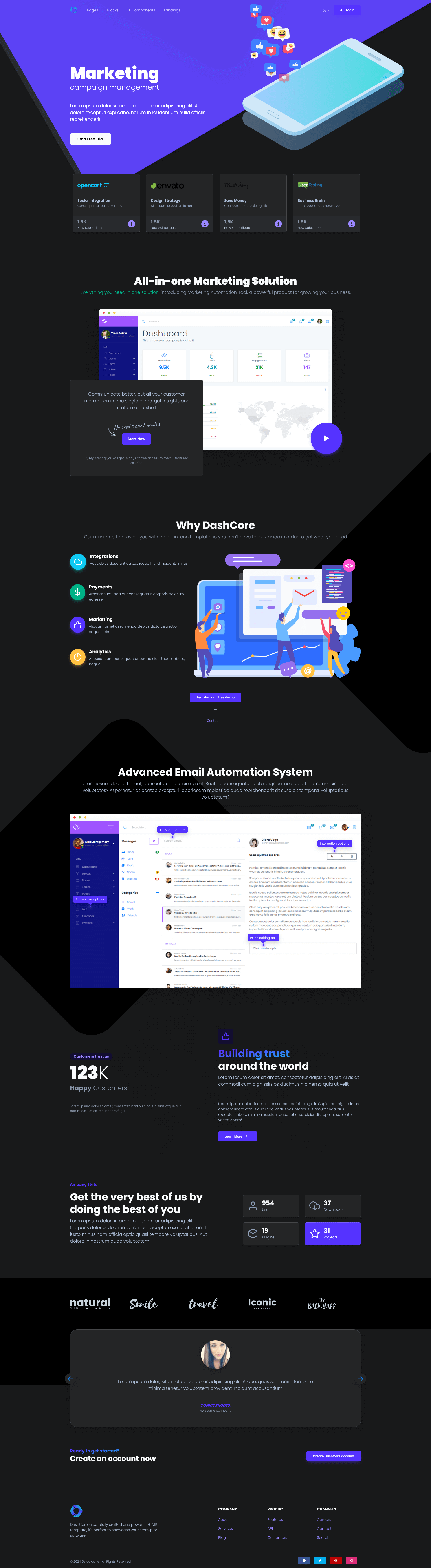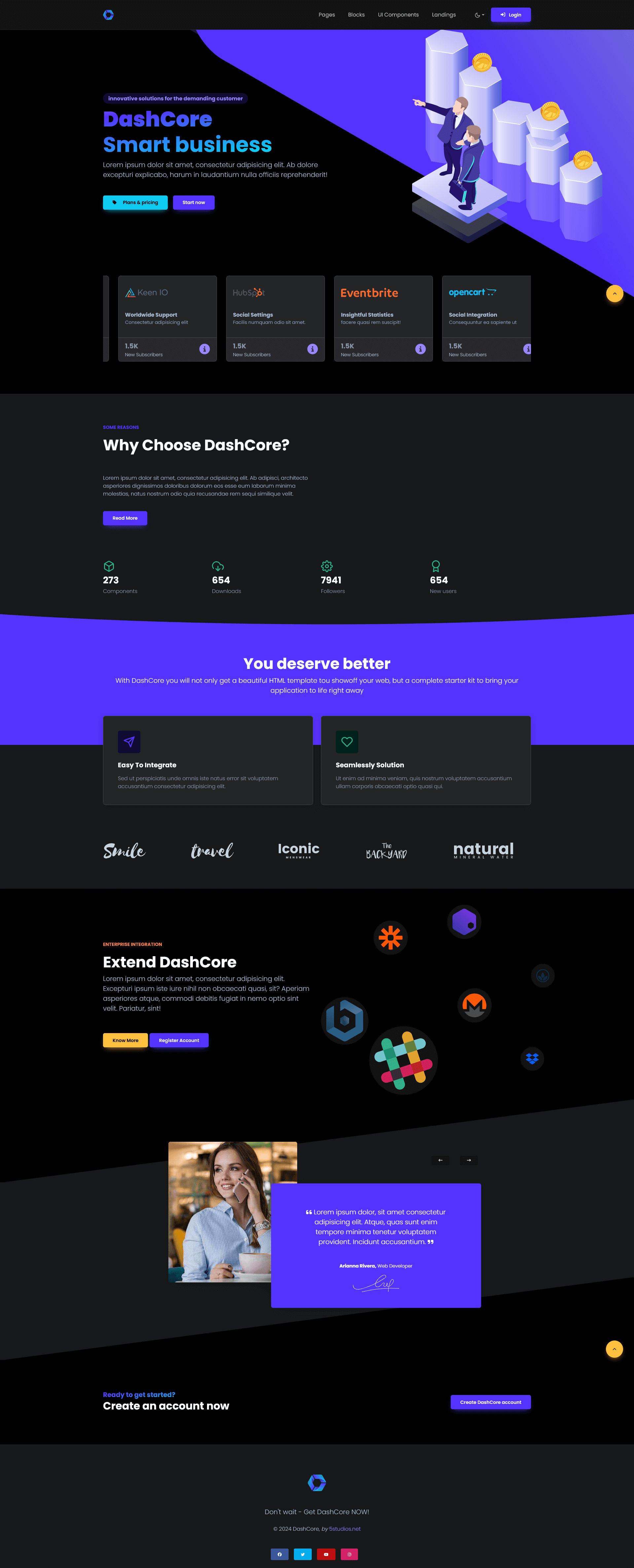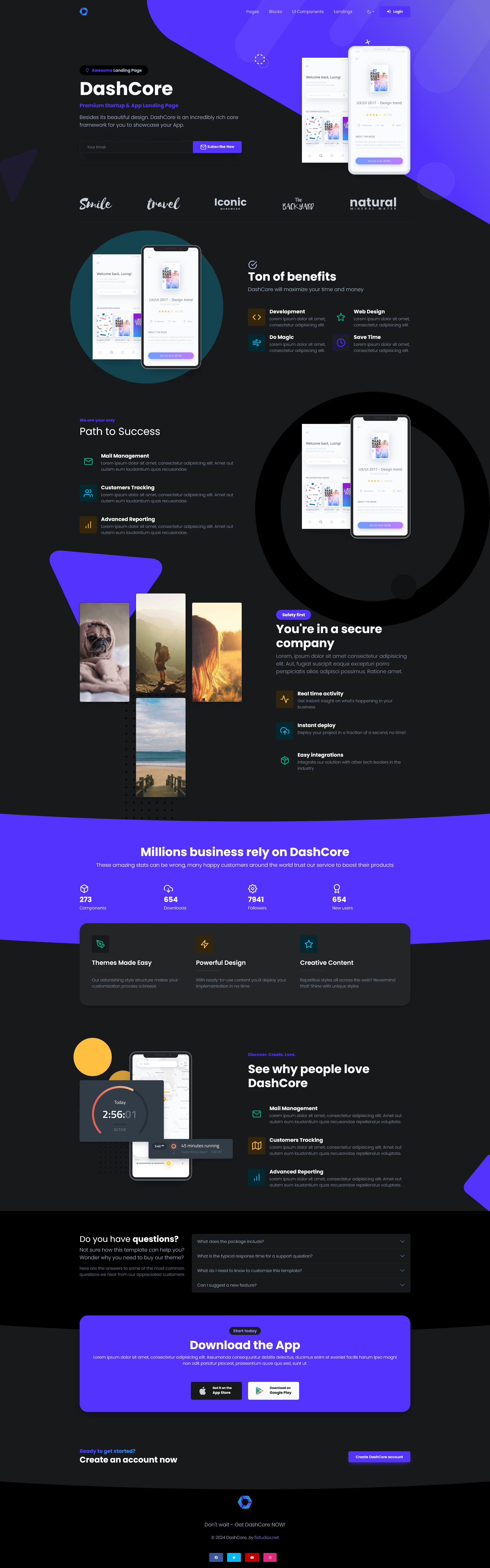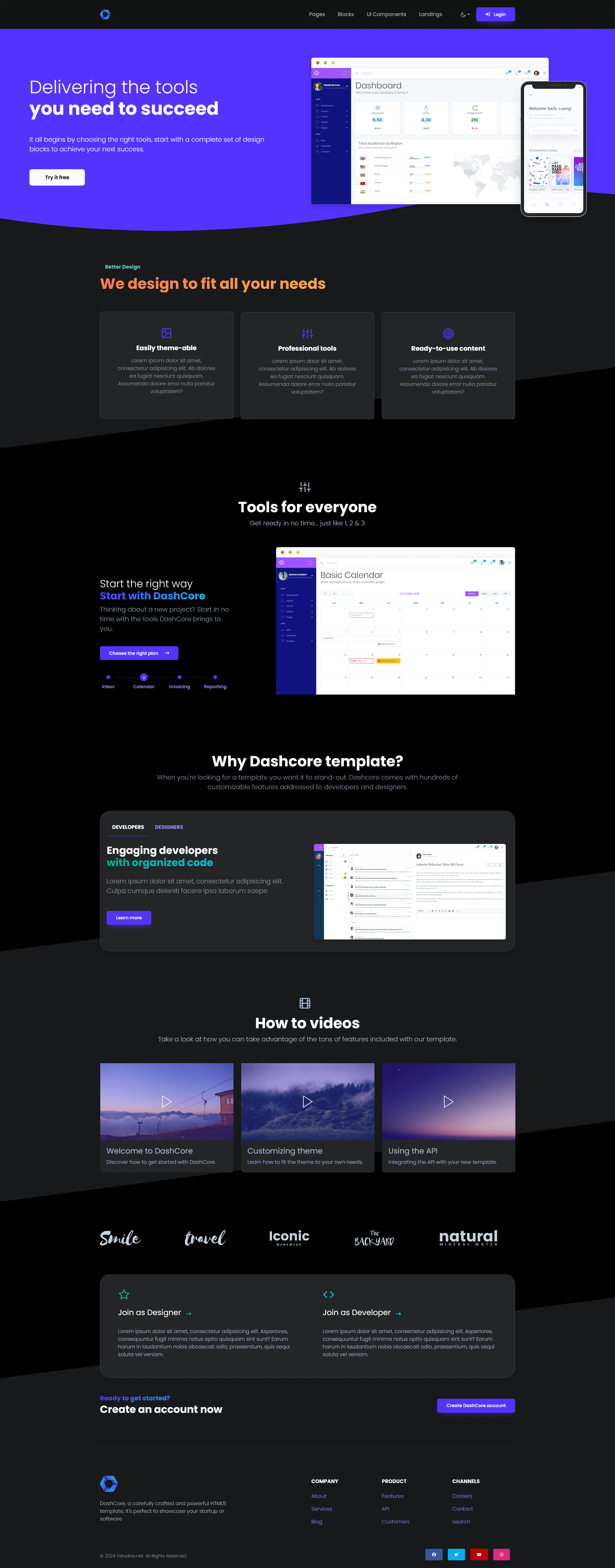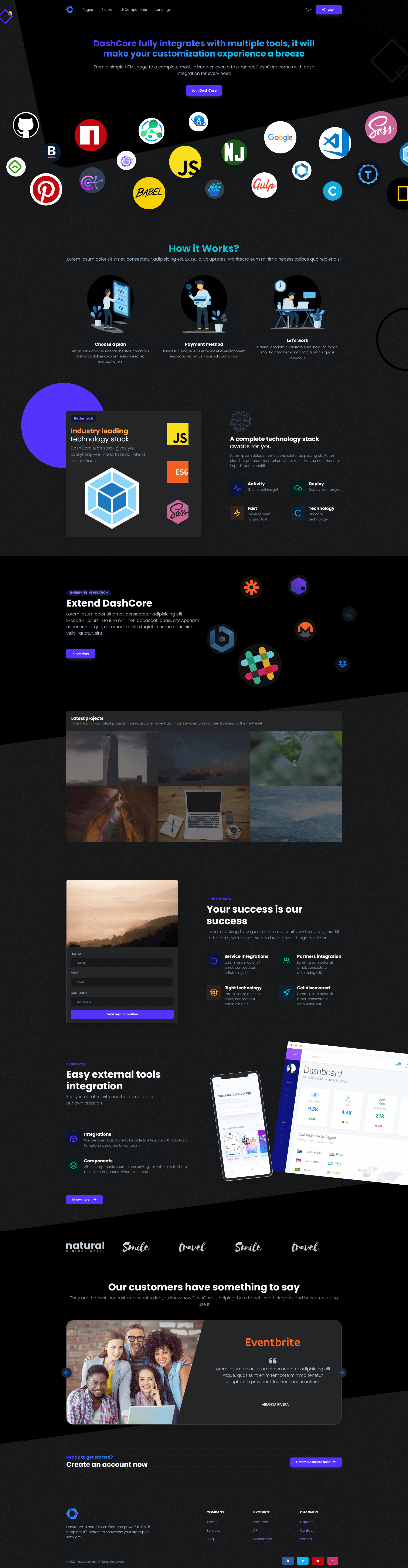 Your amazing product deserves an outstanding way to show it. Dashcore will provide you with a quality template no matter what your idea is about.